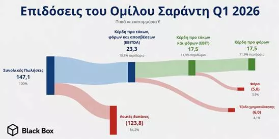 📈 Η Γρ. Σαράντης Α.Β.Ε.Ε. ανακοίνωσε ισχυρά αποτελέσματα α’ τριμήνου 2026, επιβεβαιώνοντας ότι το επιχειρηματικό momentum συνεχίζεται. Οι καθαρές πωλήσεις ανήλθαν στα €147,1 εκατ., αυξημένες κατά 3,7%, χάρη στο καλύτερο προϊοντικό μείγμα, την αυξημένη συμβολή των αντηλιακών προϊόντων και την εποχική ώθηση του Πάσχα.