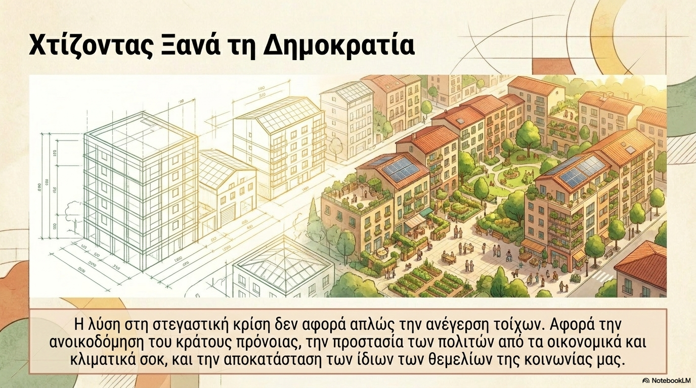 Η στεγαστική κρίση απειλεί τα ευρωπαϊκά θεμέλια. Η έλλειψη κοινωνικής στέγασης οδηγεί σε αύξηση των τιμών ενώ οι μισθοί παραμένουν στάσιμοι με αποτέλεσμα εκατομμύρια άνθρωποι να μην μπορούν να εξασφαλίσουν προσιτή κατοικία.